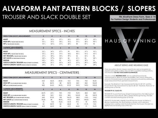 AlvaForm (Sizes 2-14) Pant Pattern Blocks / Slopers - Trouser & Slack Double Set (PRINTED PATTERN)