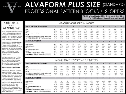 AlvaForm PLUS SIZE (Sizes 14-36) Basic Dress Pattern Blocks / Slopers (PRINTED PATTERN)