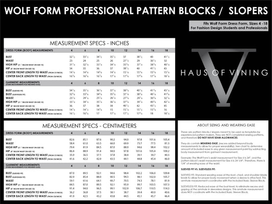 Wolf Form (Sizes 4-18) Basic Dress Pattern Blocks / Slopers (PRINTED PATTERN)