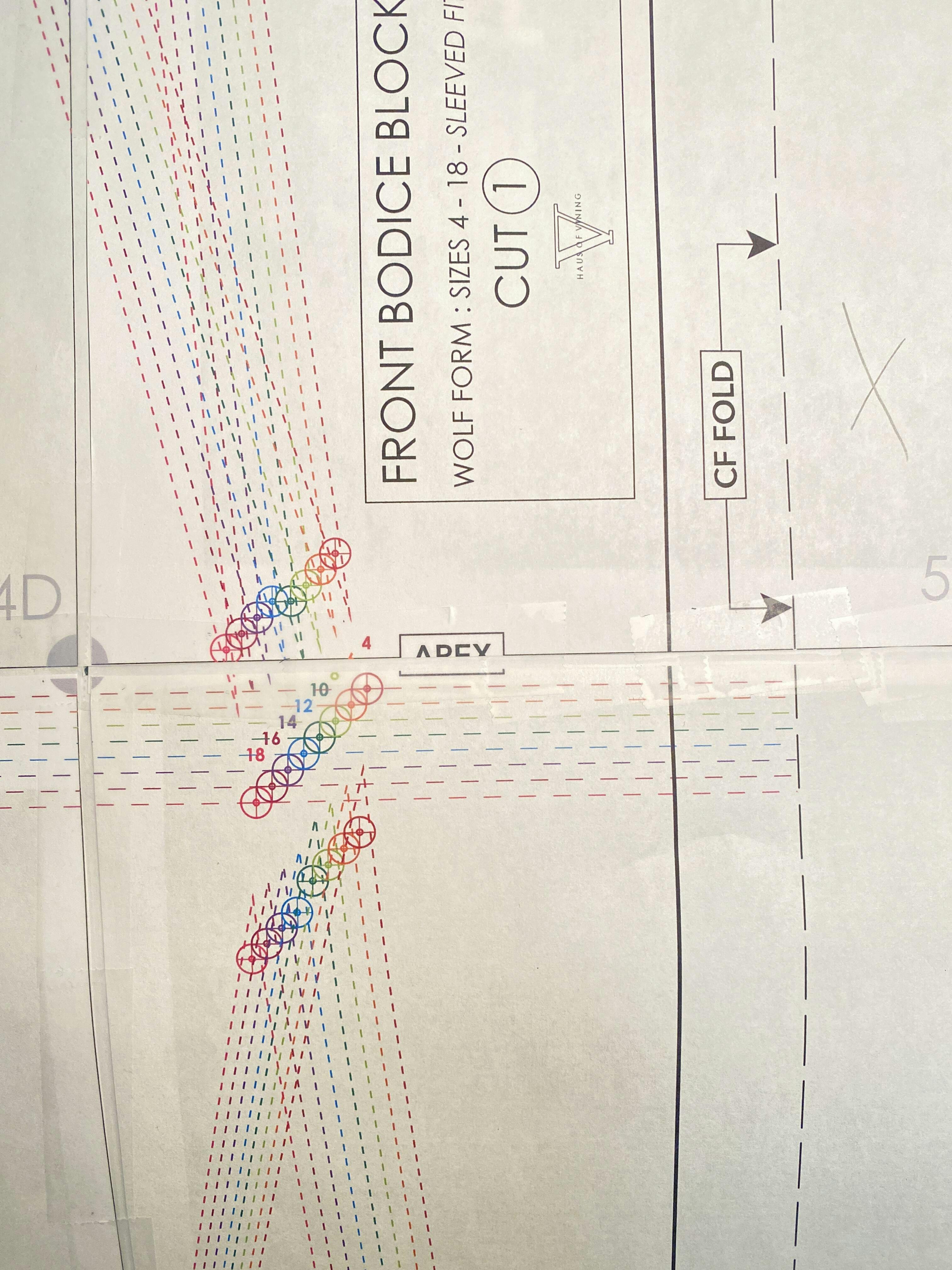 These Basic Dress blocks/slopers were draped and trued on a genuine Wolf Form dress form, size 6, Model 2012. The base size 6 was then digitized, and graded up and down to create the full 4-18 size run of the Wolf Form Missy series. All sizes are included in this file download, shown as a graded nest and color-coded for each size. (Sizes are also number labeled, if printing in black-and-white is desired). This PDF file also features separate layers to allow for printing of individual sizes.